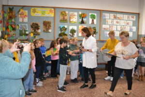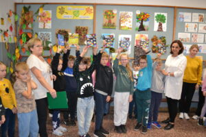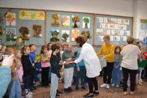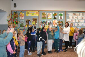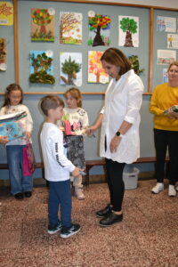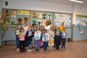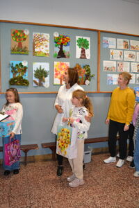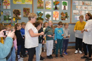 Dziś obchodziliśmy „Dzień Drzewa” – to wspaniały dzień, w którym przypominamy sobie, jak ważne są drzewa dla nas i naszej planety. Drzewa dają nam czyste powietrze, którym oddychamy, tworzą cień w upalne dni, a także są domem dla wielu zwierząt. Dzisiejsze święto było okazją do wręczenia nagród w konkursie plastycznym „Jesienne drzewo”.