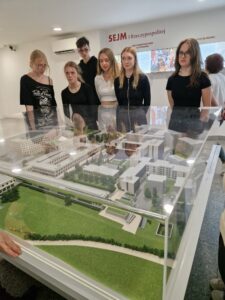 Następnie odwiedziliśmy Sejm Rzeczypospolitej Polskiej, gdzie młodzież miała okazję przyjrzeć się z bliska pracy polskiego parlamentu oraz dowiedzieć się więcej o procesie legislacyjnym.
