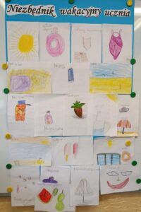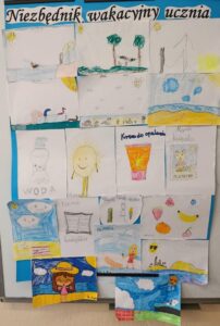 Uczniowie kl. 1a i b SP w Wydminach uczestniczyli w czwartym, ostatnim spotkaniu czytelniczym w ramach ogólnopolskiego projektu edukacyjnego ,,Książka o każdej porze roku’’. Tematem zajęć było zbliżające się lato opisane w pełnym humoru wierszu Jana Brzechwy ,,Przyjście lata’’. Pierwszaki doskonale wiedziały, że zbliżająca się pora roku nie przyleci samolotem, ani nie przyjedzie samochodem, tylko pewnego dnia przyjdzie sama pełna w słońcu i kwiatach. Lato to czas wakacyjnych przygód, plażowania, podróży i beztroskiego wypoczynku. Podsumowaniem zajęć było wykonanie pracy plastycznej, pt.: ,,Wakacyjny niezbędnik ucznia’’.