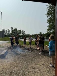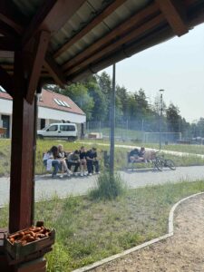 Potem przyszedł czas na ognisko – przy wspólnym pieczeniu kiełbasek był czas na rozmowy, śmiech i integrację.