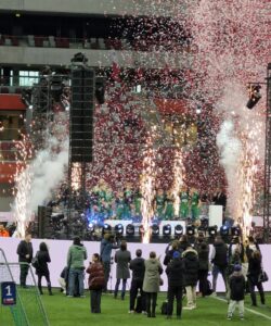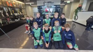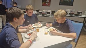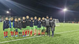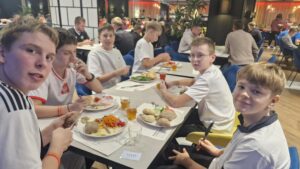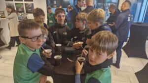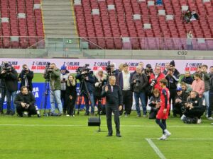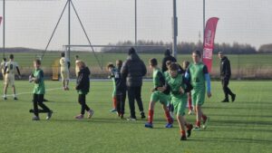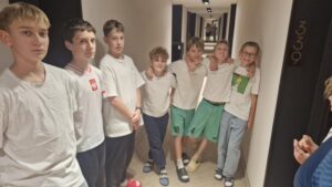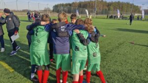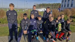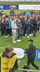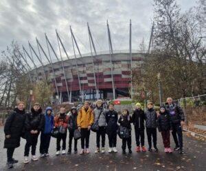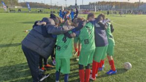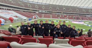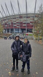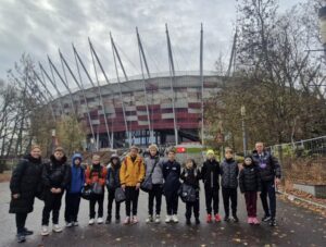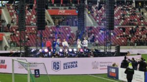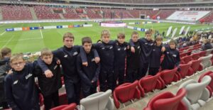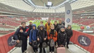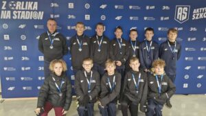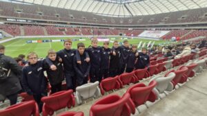 Z dwoma wygranymi i remisem powinniśmy awansować z pierwszego miejsca z grupy do fazy pucharowej grającej o miejsca 1-8. Stało się niestety inaczej. W finale B (14.11.2025) rozgrywanym ponownie na obiektach szkoleniowych Legii Warszawa, wygrywamy dwa kolejne mecze i przegrywamy mecz o miejsce 1 z ekipą wspomaganą przez Stal Mielec. Dało to nam dziesiąte miejsce w kraju, które jest bardzo dobrym osiągnięciem na tak małą miejscowość. Nasi uczniowie mieli zapewnione komfortowe warunki w hotelu Arche Krakowska, organizatorzy z Fundacji Orły Sportu zadbali o ubrania i torby dla każdego uczestnika, zapewniali nam transport z hotelu na obiekty sportowe. Mogliśmy uczestniczyć we wspaniałym finale rozgrywek na PGE Narodowym (15.11.2025), który stanowił podsumowanie tej wspaniałej przygody, o której marzy niejeden polski uczeń. Zdarzyło się kilka wpadek organizacyjnych, udało się nam zapewnić transport na zawody dzięki uprzejmości szkoły i rodziców. Na osłodę zostaje zdjęcie drużyny w listopadowym „Skarbie Kibica” Przeglądu Sportowego i plakat naszej ekipy w najbliższym wydaniu Giga Sport. Drużyna zagrała w składzie Patryk Rejs (5 miejsce w klasyfikacji strzelców), Mieszko Warchoł (2 miejsce wśród asystujących), Michał Szpak (22 w klasyfikacji strzelców), Jakub Boczkowski, Oskar Chęcmanowski, Witold Zubowicz i nasi „juniorzy” Marcel Osior, Janek Lipowczan, Michał Andrejczyk i Hubert Brzóska.