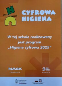 Nasza placówka realizuje w projekt „Cyfrowa Higiena” skierowany do uczniów klas 4-8 SP, organizowany przez Ministerstwo Cyfryzacji.