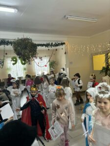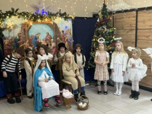 Dzieci zaprezentowały piękny występ jasełkowy, który został nagrodzony ciepłymi uśmiechami i gromkimi brawami. Mali artyści z wielkim zaangażowaniem recytowali swoje role i śpiewali kolędy, dostarczając wszystkim wielu wzruszeń.