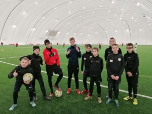 w kompleksie Centralnego Ośrodka Sportu w Giżycku. Rozegraliśmy tam już kilka spotkań z zespołami z Giżycka i Białegostoku. Dodatkowo Polski Związek Piłki Nożnej zaprosił naszego kapitana Bartosza Rolnika na tygodniowe zgrupowanie do Siedlec (23-29.02.2022). Udział w treningach i meczach kontrolnych z przyszłymi reprezentantami kraju U15 odbyło się w ramach Zimowej Akademii Młodych Orłów. Idąc za ciosem Bartosz wyjechał z zespołem Wisły Płock na kolejne zgrupowanie (Busko Zdrój, 04-11.02.2022), które ma mu pomóc w przejściu do tego klubu. Ostatnie wydarzenia z pewnością zmobilizują również cały zespół, do wchodzenia na ścieżkę profesjonalnej kariery sportowej, która wymaga całkowitego poświęcenia.