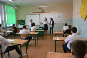 - Uczniowie zaznaczają odpowiedzi na karcie odpowiedzi – do zadań zamkniętych. Po upłynięciu czasu przeznaczonego na pisanie egzaminu, uczniowie maja wyznaczone dodatkowe 5 minut przeznaczone na sprawdzenie poprawności przeniesienia odpowiedzi na kartę odpowiedzi. Uczniom którym przyznano dostosowanie nieprzenoszenia odpowiedzi na kartę odpowiedzi – nie wykonują tej czynności,