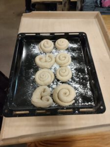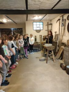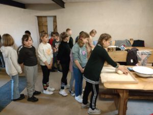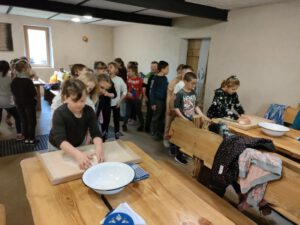 ,,W dzisiejszych czasach, kiedy wybór produktów spożywczych w sklepach przyprawia o zawrót głowy, warzywa i owoce z całego świata dostępne są przez okrągły rok, ale choć pięknie wyglądają, zupełnie nie mają smaku i zapachu, a kształtne bochenki chleba i śliczne bułeczki smakują jak wata, warto wrócić do korzeni, i nie tylko dowiedzieć się, jak przygotowywali pożywienie nasi przodkowie, ale i samemu tego spróbować, np. upiec własny pachnący chleb”. „Chlebowy Domek” zaprasza grupy szkolne na warsztaty, podczas których dzieci własnoręcznie zrobią ciasto drożdżowe oraz uformują i upieką własne bułeczki”. Uczniowie klas drugich SP skorzystali z zaproszenia. W oczekiwaniu na wyrastanie ciasta oraz pieczenie bułek, dowiedzieli się, skąd bierze się mąka na chleb, na czym polega praca rolnika, młynarza i piekarza, oraz obejrzały wiele zabytkowych sprzętów związanych z tym tematem. Słowem – zajęcia pod hasłem „Od ziarenka do bochenka”, a wszystko w duchu ekologii i powrotu do natury. Dodatkowym atutem warsztatów było miejsce, w którym się odbyły – niemal stuletni poniemiecki budynek gospodarczy, pięknie odnowiony i wyposażony w autentyczny piec chlebowy. Warsztaty zakończyły się drobnym poczęstunkiem.