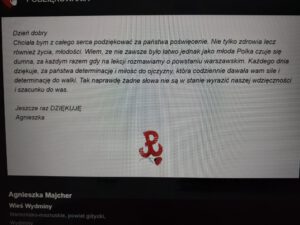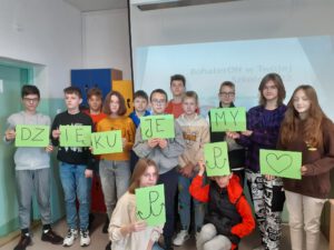 17 października 2022 r. uczniowie klasy 8a oraz SLO wzięli udział w ogólnopolskiej kampanii BohaterON – włącz historię! Celem projektu jest upamiętnienie i uhonorowanie uczestników Powstania Warszawskiego oraz promocję historii Polski XX wieku. Nazwa akcji stanowi połączenie dwóch słów – polskiego „bohater” oraz angielskiego „ON”, czyli „włączyć”. Angielskie „ON”, zapożyczone z popularnego przymiotnika „on-off”, dosłownie włącza historię bohatera – film lub prezentację. Nazwa projektu ma również sygnalizować chęć włączenia do świadomości społecznej wydarzeń realizowanych w celu promocji dziejów naszego narodu oraz historii ludzi żyjących w czasach drugiej wojny światowej i wykazujących się patriotyczną postawą – osób, które nie chciały zostać bohaterami i wcale się za nich nie uważają, ale narażając swoje zdrowie za walkę o ojczyznę, stały się wzorami do naśladowania. W ramach realizacji projektu uczniowie wzięli udział w lekcjach dotyczących Powstania Warszawskiego oraz dokonali wpisów na portalu www.dumnizpowstańców.pl. Każdy wpis to znacznik na mapie Polski symbolizujący dowód uznania, pamięci i dumy z Powstańców Warszawskich oraz młodych pamiętających i dumnych ze swojej historii. Zachęcamy do poczytania wpisów naszych uczniów na www.dumnizpowstańców.pl.